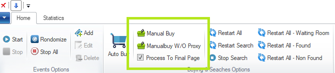 For waiting room (carted) tickets, manual checkout requires the original account used to cart the ticket. In this case, “Proceed to Final Page” must be disabled, since the ticket is already tied to a specific account and cannot be accessed through automatic login.