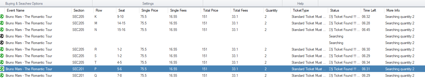 When X1Ticket finds available tickets, it displays them in a data grid with detailed information, allowing you to choose which tickets you want to purchase. You can either let X1Ticket complete the checkout process automatically, or you can buy the tickets manually using the built-in Chrome browser.
