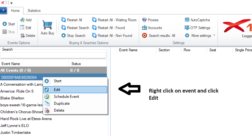 For more information on event setting you can edit, reffer to Event Options